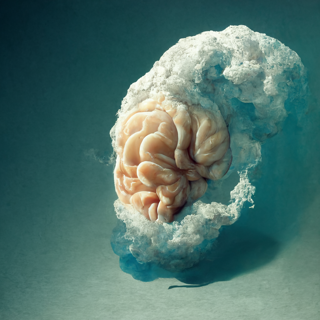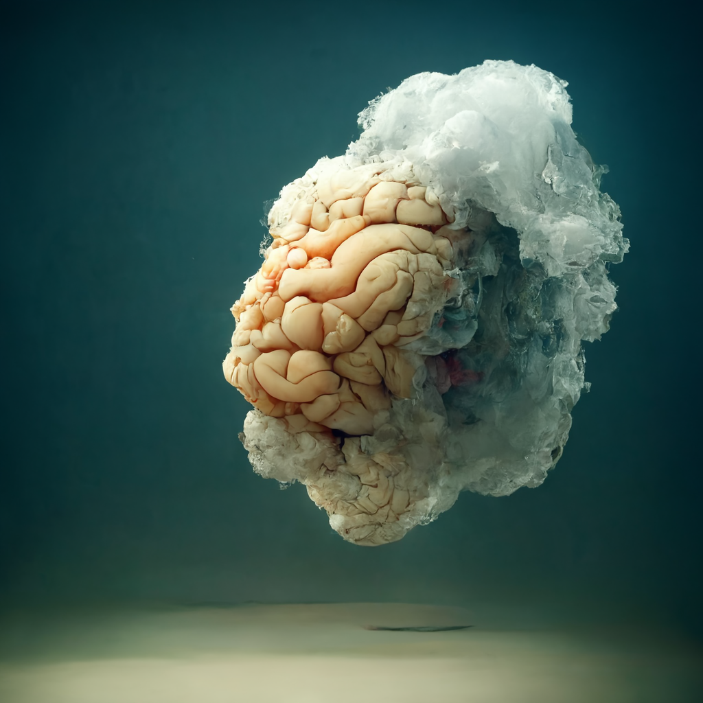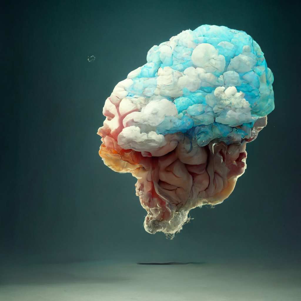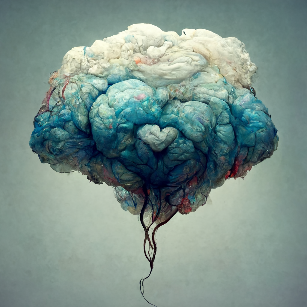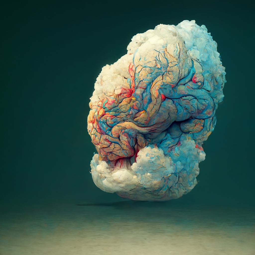 This series explores the blurred boundaries between technology, nature, and cognition through AI-generated visuals created with MidJourney. The illustrations resemble both clouds and brains, inviting viewers to reflect on perception and meaning.