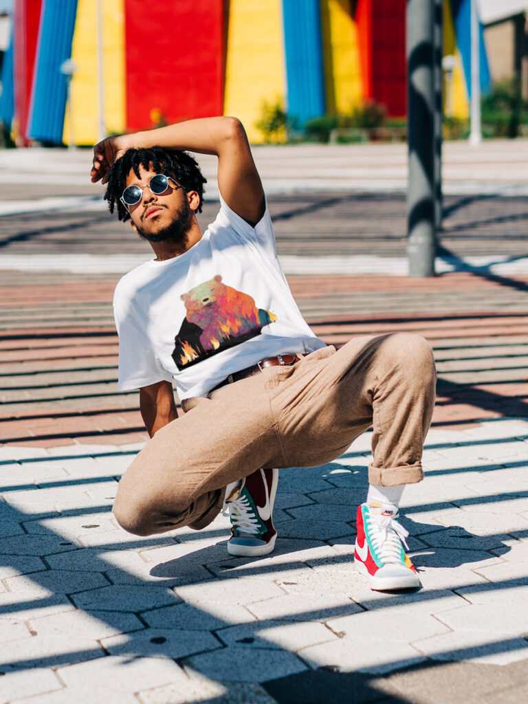 This series tells a playful story of a bear who accidentally discovers campers’ beer, captured through AI-generated illustrations and transformed into a fun t-shirt collection. The designs blend humor, narrative, and visual appeal, bringing a lighthearted tale to wearable art.